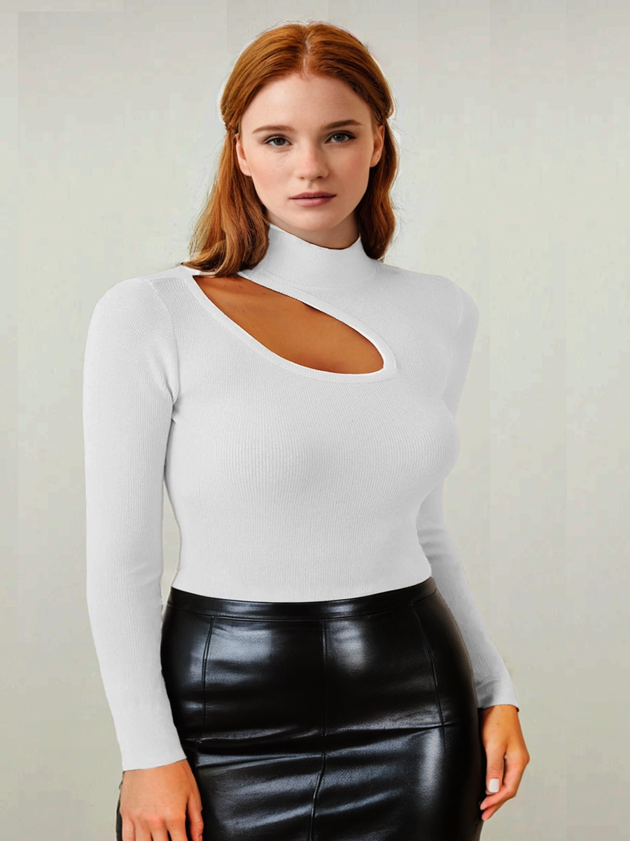 Beyaz Fitilli Polo  V Yaka  Uzun Kol Bluz Beyaz Fitilli Polo  V Yaka  Uzun Kol Bluz